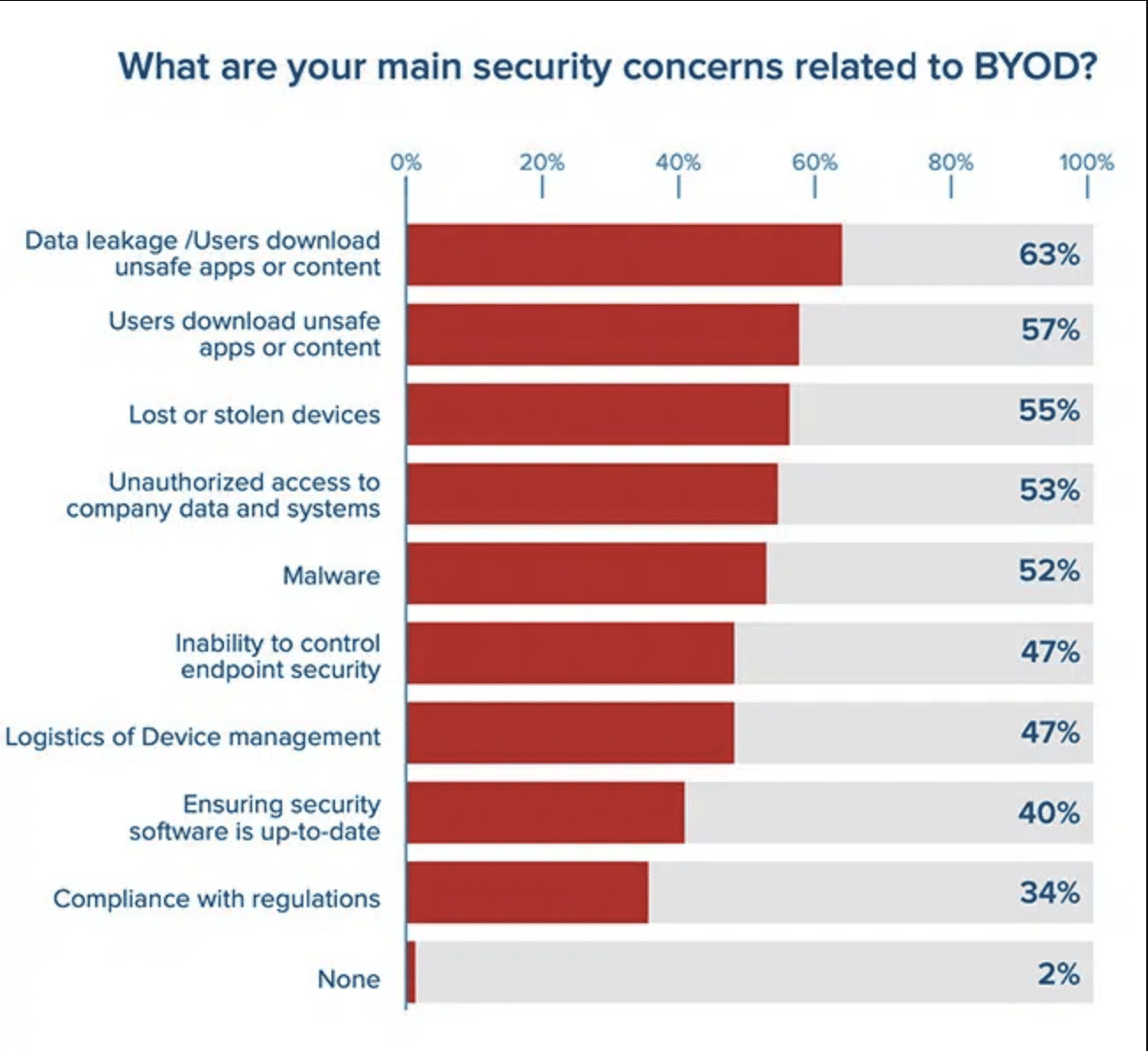 Personal devices often lack the stringent data security controls of their company-owned counterparts. Helpnet Security reports that data leakage is the biggest concern among organizations, with 63% of respondents listing this as their top concern with BYOD policies. This deficiency exposes sensitive customer and business data to the lurking threats of potential breaches which are becoming increasingly common in the retail space. Even if the employee’s device is lost or stolen outside of work, this can lead to serious security implications for the organization.