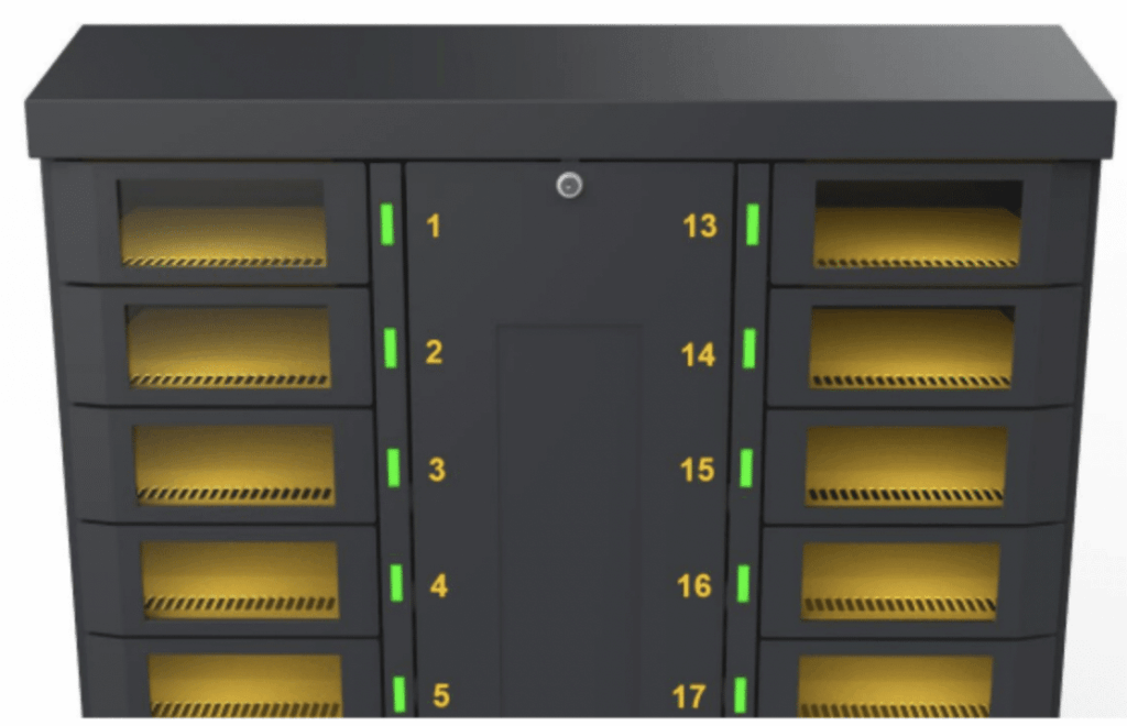 There was quite a long list in our request for proposal, but a few important parameters included: ease of serviceability for technicians, windows for users to be able to see if a device was inside the locker or not, locker status indicator LEDs, and ensuring devices inside the lockers can receive WiFi signals which is important for software updates. There was a lot of thinking that went into the design on that front.